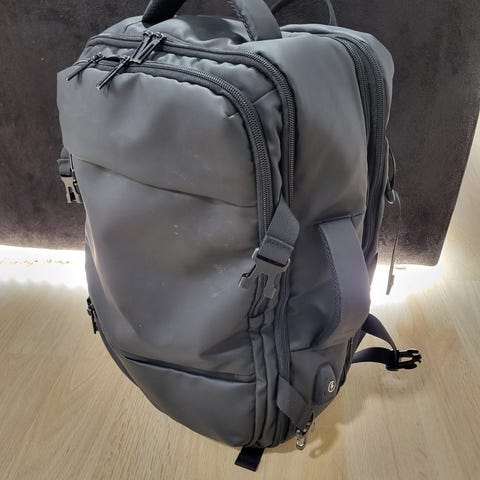 Saa kokonaan auki. Kookas sisätila, 17.3" läppäritasku. Useita eri taskuja, myös erillinen kenkätasku. Hyvä ja hengittävä selkäosan materiaali. Hihnat saa kätevästi piiloon, eikä sotkeudu (esim lentokoneeseen). Kantohihna sekä hyvät kiinnikkeet.