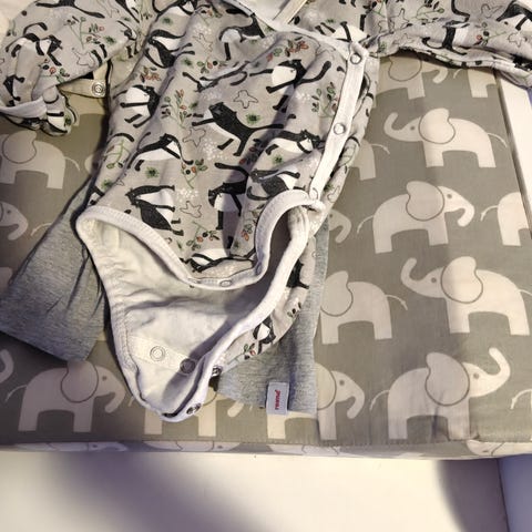 Vauvan vaatesetti, koko 50, 56, 50/56. Eri merkkejä, pari itsetehtyä. Aika unisex sävyjä niin sopii niin tytölle kuin pojalle.