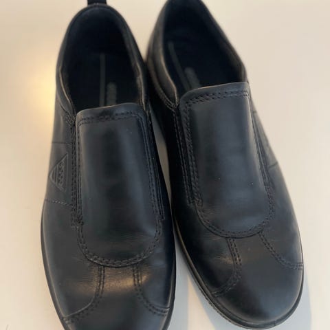 Ecco nahkaiset kävelykengät, koko 39. Mustat nauhakengät, joissa matala kumipohja ja ommeltu reunos. Sopivat arkikäyttöön ja kävelyyn.