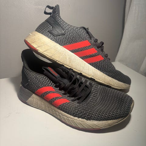 Craft juoksukengät, koko 44. Väri musta valkoisella välipohjalla ja valkoisilla logo-yksityiskohdilla. Päällinen verkkokangasta, joka on suunniteltu hengittäväksi. Nauhakiinnitys. Pohjassa kuvioitu kumipohja, joka on tarkoitettu juoksuun ja muuhun liikuntaan kovilla alustoilla. Sopivat juoksuun ja yleiseen urheilukäyttöön.