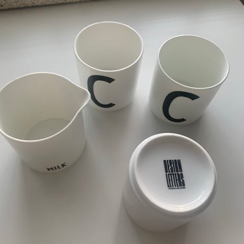 Design letters mukit ja astiat pakettina.