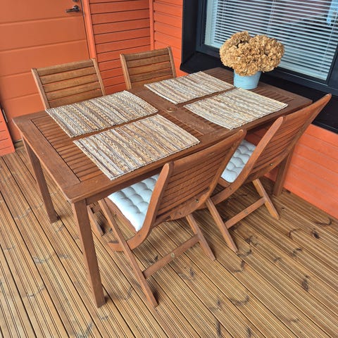 Myytävänä hyväkuntoinen sohvaryhmä just sun pihallesi! Kauppaan kuuluu sohva, pöytä, tuolit x2 sekä pehmusteet, mutta ei kuvassa näkyvät 2x koristetyynyt tai riippukeinu. Vain nouto.