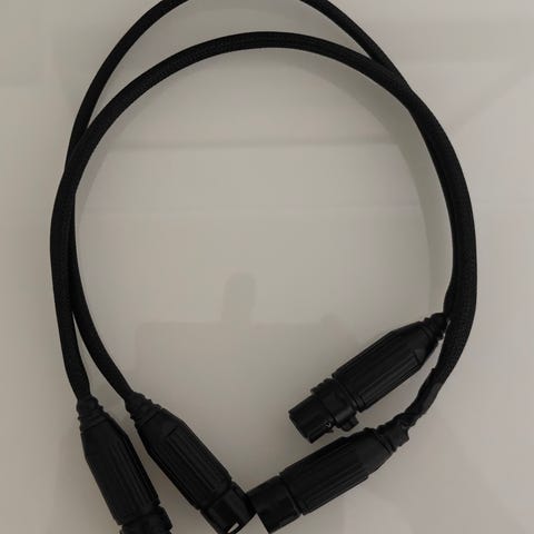 Läjä eri mittaisia xlr-kaapeleita. Kaikissa XLR 3-nastainen naaras <=> XLR 3-nastainen uros. Johtojen poikkileikkaus: 2 x 0,22 mm2.