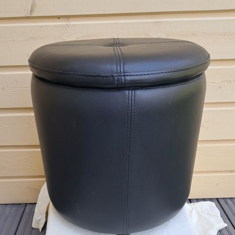 Myydään kuvan musta rahi. Päällisosan koko noin 75 x 58 cm, korkeus n 43 cm. Ostettu Ikeasta. En ole varma materiaalista, nahkaa tai keinonahkaa.