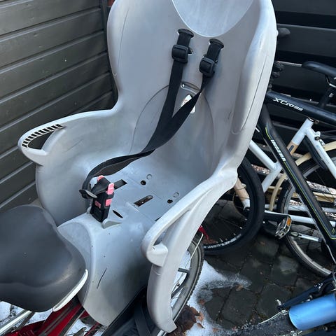 Hamax lasten pyöränistuin 22 kg, harmaa runko ja vihreä istuinosa. Istuimessa on selkänojallinen rakenne, säädettävät jalkatuet ja jalkahihnat. Lapsen kiinnitystä varten on turvavyöt. Istuimen kiinnitys tapahtuu pyörän runkoon metallisilla kiinnityskaarilla. Soveltuu enintään 22 kg painavalle lapselle