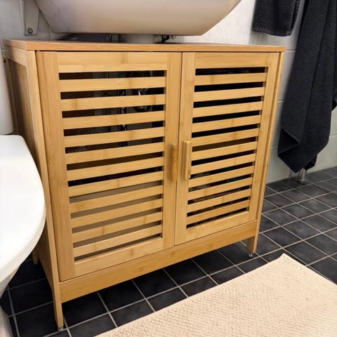 Allaskaappi: leveys 50 cm, korkeus 46 cm, syvyys 44 cm.