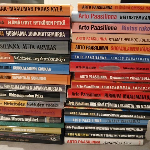 Muuton alta kaipaa uutta kirjahyllyä Arto Paasilinnan 8 kirjan kokoelma, 6 kokoomateosta ja 2 kirjaa Arton elämästä: