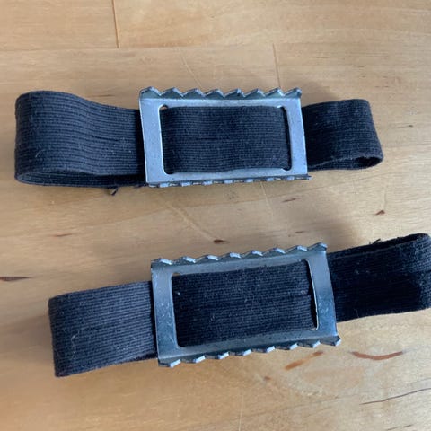 Hyväkuntoiset liukuesteet saappaisiin tai talvikenkiin. Pilkille tai muuhun jäällä liikkumiseen. Tarrakiinnitys. Koko säädettävissä 40-46 kokoisiin jalkineisiin, kuvassa no 46 pilkkisaapas.