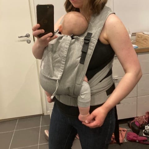Tämän kantorepun iso etu verrattuna moniin ergoreppuihin on se, että jos sitä käyttää kaksi vanhempaa, sen saa nopeasti ja helposti säädettyä kummallekin sopivaksi ilman jatkuvaa remmien säätämistä. Meille tämä oli suuri plussa.