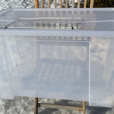 Metallinen häkki jyrsijöille. Tasoihin leikattu aukot, että pääsee kulkemaan kerroksesta toiseen. Nämä saa peitettyä levyllä, mikäli tarvii 3 erillistä tilaa.