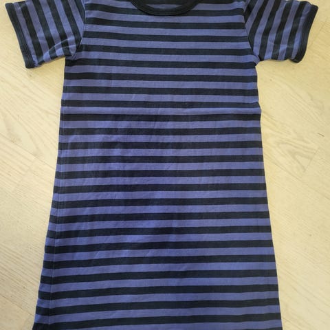 Siisti raitapaita. Jos oikein tarkasti katsoo, valkeat pääntie ja hihansuut ehkä hieman harmahtavat. Yhdellä lapsella ollut.