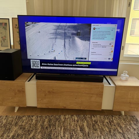 Laadukas täyttä tammea(45mm)oleva tv-taso. Ei heilu/notku.