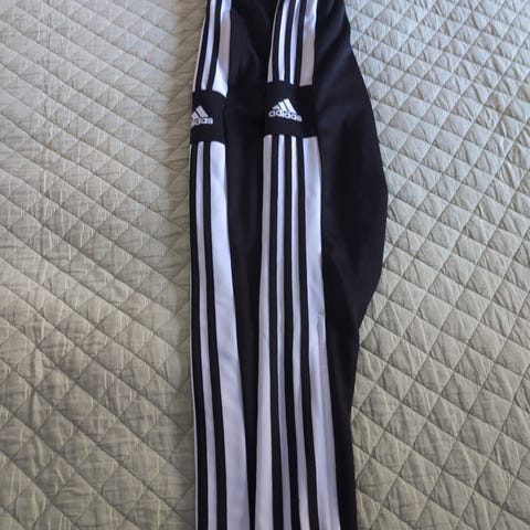 Adidas Clima365 Essentials lasten verkkarit. Koko 152 cm (valmistajan merkintä 12A / 150). Väri musta, sivussa valkoinen Adidas-logo. Housuissa joustava kuminauhavyötärö ja lahkeensuissa kuminauha sekä vetoketjut helpottamassa pukemista ja riisumista. Materiaali on kevyt ja ohut, sopii esimerkiksi kevyeksi ulkoverkkariksi.
