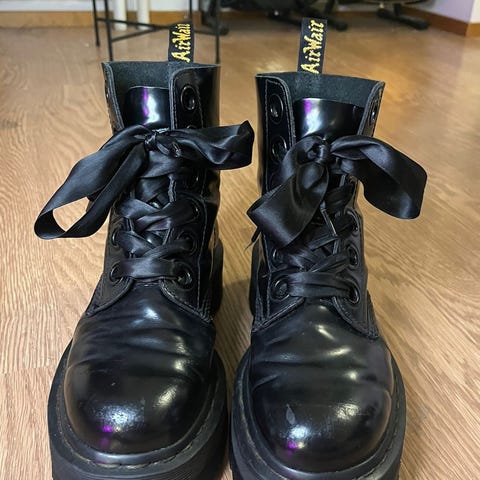 Myydään uudenveroiset valkoiset Dr. Martens JADON II Vegan Platform bootsit. Korkealle kohoavat Jadon-maiharit on valmistettu vegaanisesta Kemble PU -materiaalista. Ei laisinkaan eläinperäisiä tuotteita. Täynnä DM's-asennetta.