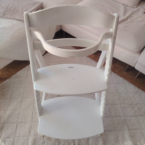 IKEA syöttötuoli, väri valkoinen. Muovinen istuinosa ja irrotettavat metallijalat. Tuolissa on integroitu tarjotinosa, joka helpottaa lapsen ruokailua. Istuin on helppo pyyhkiä puhtaaksi sileän pinnan ansiosta. Sopii käytettäväksi esimerkiksi keittiössä tai ruokailutilassa pienen lapsen ruokailutuolina. Mahdollinen istuinpehmuste näkyy kuvissa, tarkemmat mitat ja lisävarusteet voi tarkistaa myyjältä.