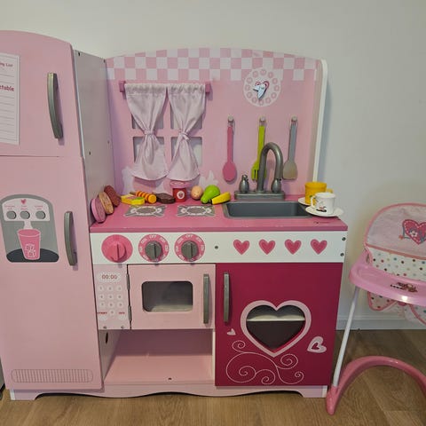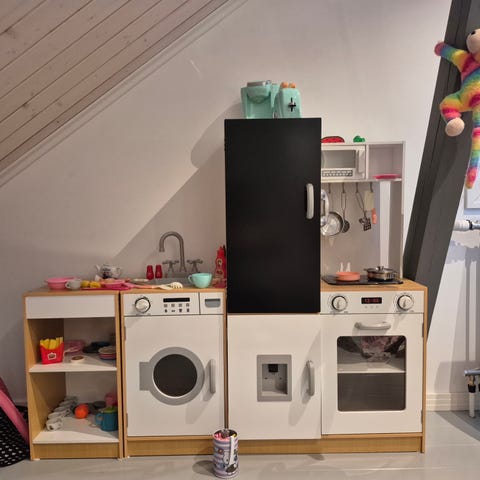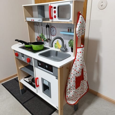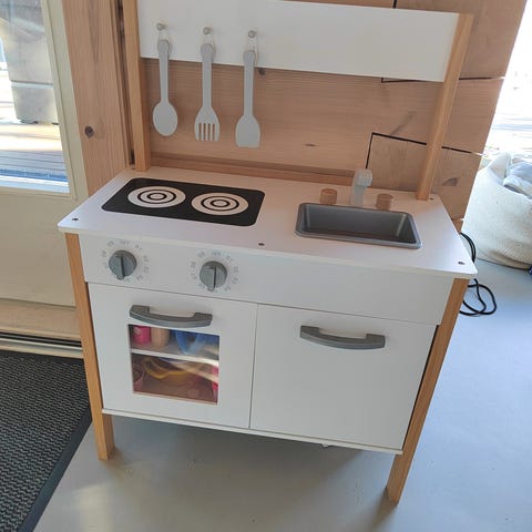Myydään käytetty minimalistinen leikkikeittiö. Laadukas Stoy merkki. Pieniä käytön jälkiä siellä täällä, mutta yleisilme on siisti. Ovessa ruuveista pienet jäljet, jotka näkyvät kuvissa. Mukaan tulee 3 kpl keittiövälineitä, jotka kuuluvat tähän leikkikeittiöön. Vain nouto. Ovh 100e.