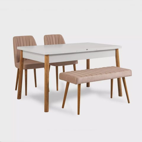Muuttaa ruokailutilasi modernilla ja tyylikkäällä pöytä- ja tuolisarjallaLuo lämmin ja kutsuva tunnelma ruokailutilaasi hienolla pöytä- ja tuolisarjalla. Tämä erittäin huolellisesti ja yksityiskohtiin kiinnitetty setti on suunniteltu kohottamaan ruokailukokemustasi ja tuomaan ripauksen eleganssia kotiisi. Vertaansa vailla oleva laatu ja kestävyysTämä setti on valmistettu 100-prosenttisesti melamiinipinnoitetusta lastulevystä, jonka paksuus on 18 mm, ja se on rakennettu kestämään. Tukevat puujalat takaavat erinomaisen vakauden, mikä takaa, että ruokailukokemuksesi on turvallinen ja varma. Elegantti muotoiluModernia ja uutuuskonseptia sisältävä pöytä- ja tuolisarjamme yhdistää saumattomasti maalaismaisen, skandinaavisen ja maalaistyylin luoden ainutlaatuisen ja huomiota herättävän huonekalun. Atlantin männyn ja vihreiden värien yhdistelmä tuo virkistävän ja eloisan kosketuksen mihin tahansa tilaan. Mukavuus ja tyyli yhdistyvätTuolit ja penkki on suunniteltu mukavuutta ajatellen. Tuolien rungot on valmistettu kestävästä metallista, joka tarjoaa poikkeuksellisen hyvän tuen, kun taas 100 % pellavavaahtomuovikangas tarjoaa pehmeän ja ylellisen istumakokemuksen. Tuolien 49 cm:n istuinkorkeus takaa optimaalisen mukavuuden tuntikausien ruokailunautintoa varten. Tekniset tiedot:Pöydän mitat: Syvyys: 75 cm, korkeus: 77 cm, leveys: 120 cm.Tuolien mitat (2 kpl): Leveys: 47cm, Korkeus: 89cm.Penkin mitat (1 kpl): Leveys: 100cm, Korkeus: 48cm, Syvyys: 39cm.Tuolirunko: MetalliTuolin kangas: 100% pellava vaahtoPenkin runko: MetalliPenkin kangas: Vaahtomuovi: 100% pellava