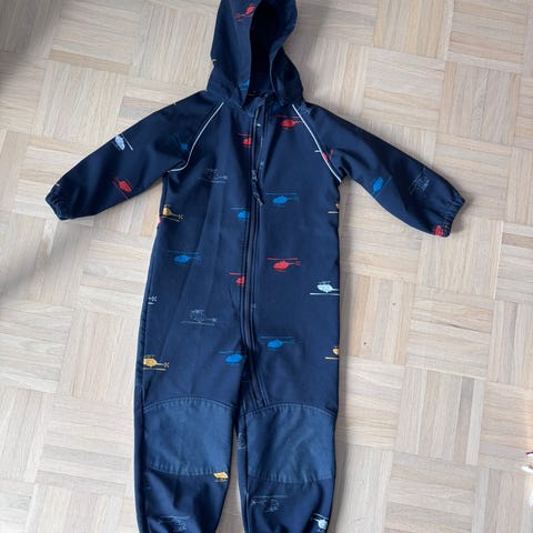 Name it PlayTech haalari, koko 98. Väri sininen. Materiaali 100 % polyesteriä, vuorillinen. Haalarissa on irrotettava huppu tekoturkisreunuksella, vetoketju edessä ja heijastinyksityiskohtia lahkeissa ja selässä. Ei jalkalenkkejä. Vähän käytetty.