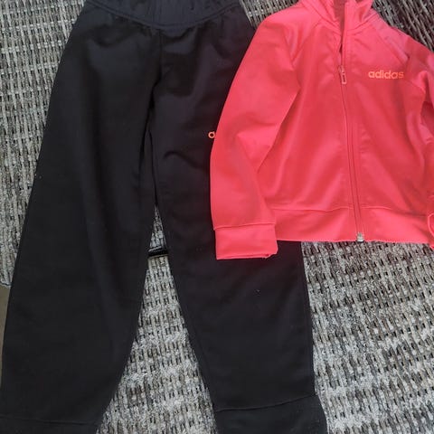 Takki ja kahdet housut, kaikki koossa 110. Takin väri vihreään taittava. Toiset housut kuuluvat takin kanssa yhteen, toiset eivät, mutta sopivat kyllä. Mustissa housuissa vetoketjut lahkeissa ja taskut löytyy. Kaikki varsin hyväkuntoisia ☀️