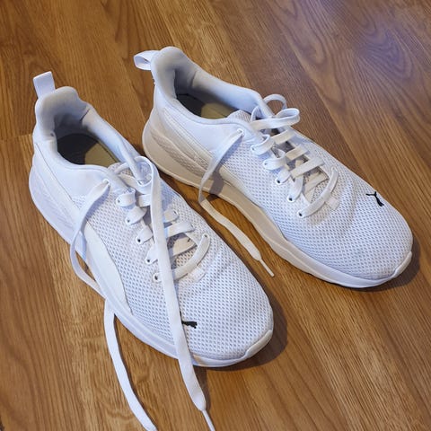 Puma lenkkarit, koko EUR 40. Monivärinen malli, jossa vaaleapohjainen päällinen ja värikkäitä tehosteita. Nauhakiinnitys ja kumipohja. Sopivat arkikäyttöön ja kevyeen liikuntaan. Valmistettu synteettisistä materiaaleista ja tekstiilistä. Kankaassa hieman tahraa mutta pesemällä puhtaaksi. Ehjät ja vähän käytetyt.