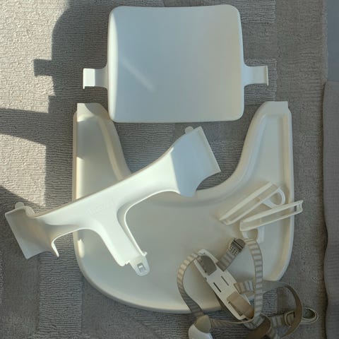 Edelleen oikein hyvässä kunnossa olevat Stokke Tripp Trapp -syöttötuolin turvavaljaat. Säädettävät valjaat ja valkoiset kiinnitysosat. Väri vaaleanbeige-valkoraidallinen. Soveltuu käytettäväksi Stokke Tripp Trapp -syöttötuolin kanssa valmistajan ohjeiden mukaisesti. Valkoisissa kiinnitysosissa hieman kulumaa, tämä huomioitu hinnassa. Nouto Savelasta Helsingistä, tai postitus Toridiilin kautta.