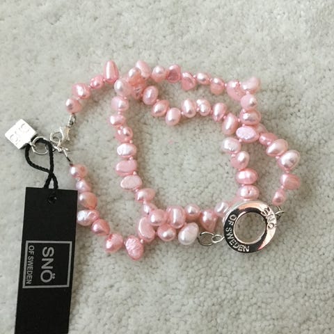 Snö of Sweden punaiset litteät helmet, pituus 120 cm. Uudenveroiset.