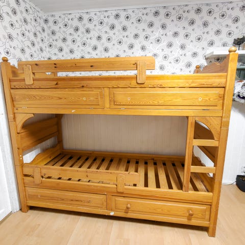Hyväkuntoinen mutta paljon käytetty parvisänky. Sänkyyn sopii 80cm leveä ja 200cm pitkä patja. Käytön jälkiä näkyy.