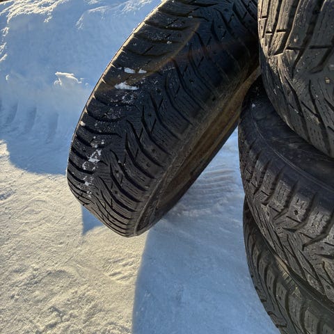 Renkaat paskat. Ainakin yksi puhki.