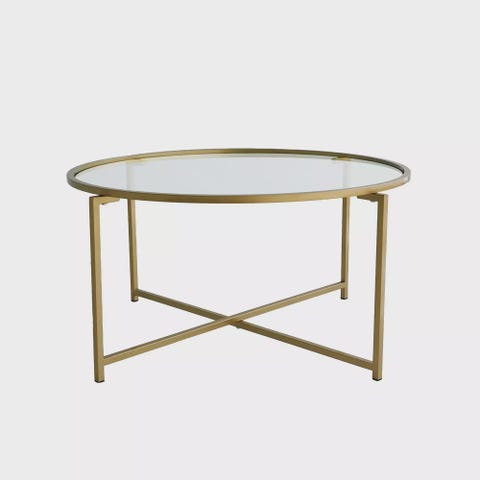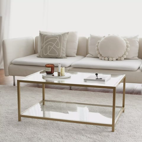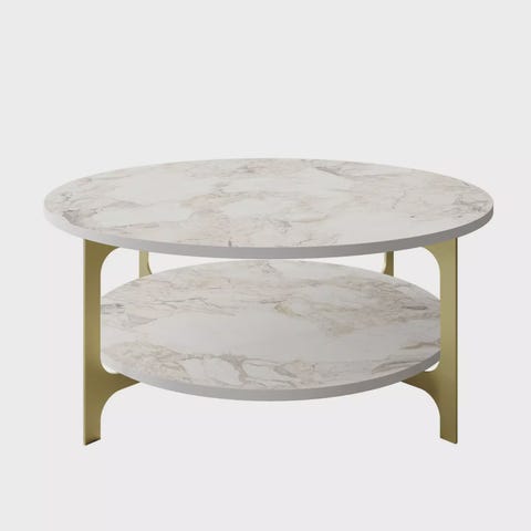 Moderni Glamour Sohvapöytä - Kultavalkoinen, 100% Melamiinipinnoitettu, Metall