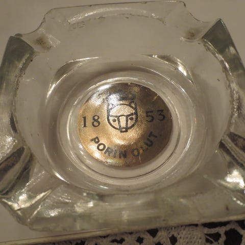 tuhkakuppi tuhkis lasi lasinen retro porin olut 1853 pubi baari sisustus keräily vintage kippo avainkippo kolikkokuppi lasiesine suomi finland paketti postitus postilla posti postitse paketilla edullinen halpa halvalla