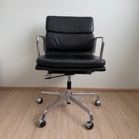 Myydään Eames Aluminium EA118 työtuoli, musta nahka.