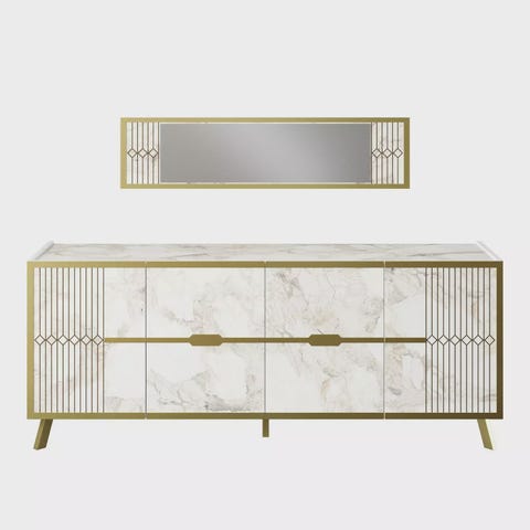 Moderni ja Teollinen Konsoli Atlantic Pine Väri, Peili Mukana, 139x75,7x43 cm,