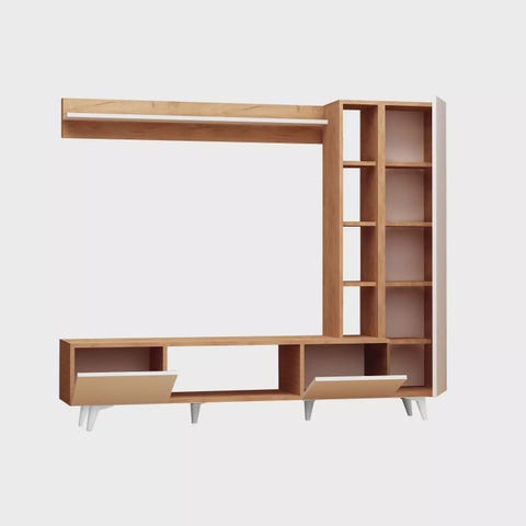 Muuta olohuoneesi tyylikkääksi ja viihtyisäksi keitaaksi upealla olohuonekalustesetillämme. 100 % melamiinipinnoitetusta lastulevystä valmistettu setti huokuu eleganssia ja kestävyyttä kuin mikään muu. 18 mm paksuus ja 4 mm CNC-relief lisäävät ripauksen hienostuneisuutta, kun taas muovijalat takaavat vakauden ja tukevuuden.Korota TilasiTämä setti sisältää TV-yksikön, kaksitasoisen sohvapöydän, seinähyllyn ja kaapin, jotka on suunniteltu parantamaan olohuoneesi sisustusta modernilla ja uudentyyppisellä konseptilla. Tilavat hyllyt tarjoavat runsaasti säilytystilaa välttämättömyyksillesi, pitäen tilasi järjestyksessä ja sotkuttomana. Tammen väri tuo kotiisi lämpöä ja viehätystä, luoden tervetulleen ilmapiirin sinulle ja vieraillesi.Vapauta LuovuutesiTämän kalustesetin monipuolinen muotoilu mahdollistaa osien yhdistelyn oman tyylisi ja mieltymystesi mukaan. Olitpa sitten luomassa viihtyisää luku- tai tyylikästä viihdealuetta, tämä setti sisältää kaiken tarvittavan visiosi toteuttamiseen.Tekniset Tiedot:Materiaali: 100 % melamiinipinnoitettu lastulevyPaksuus: 18 mmCNC-relief: 4 mmJalat: MuoviTV-yksikön koko: L180 cm x K40 cm x S37 cmKaksitasoisen sohvapöydän koko: L105 cm x K40 cm x S58,2 cmHyllyn korkeus: 16,1 cmSeinähyllyn koko: L120 cm x K11,8 cm x S16,1 cmKaapin koko: L26,4 cm x K63 cm x S22 cmVäri: TammiKonsepti: Moderni - Uutuus, KukkaUudista elintilasi olohuonekalustesetillämme ja koe täydellinen yhdistelmä tyyliä, toimivuutta ja laatua. Tee sisustuksellasi vaikutus ja luo tila, joka heijastaa ainutlaatuista persoonallisuuttasi. Tilaa nyt ja nosta kotisi uusiin eleganssin ja hienostuneisuuden korkeuksiin.