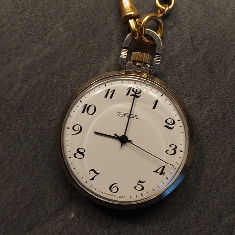 Tyylikäs taskukello keräilijälle. 15 rubis. Mekanismi toimii. Metallikuori.