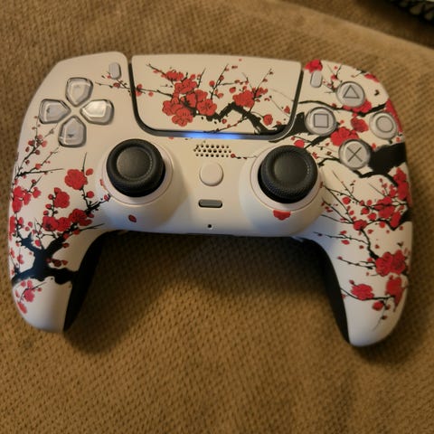 Modattu gen. 5 dualsense ohjain Extremeraten kumigripeillä varustetulla takakuorella ja neljällä ohjelmoitavalla takanapilla. Saa myös neljälle eri setupille. L2 ja R2 napit vaihdettavilla clicky triggereillä eli saa päälle ja pois.