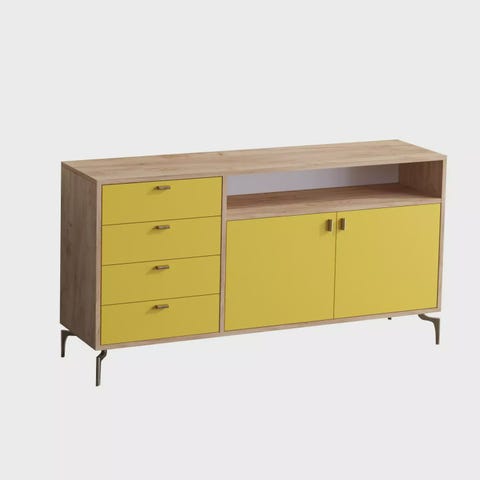 Muuta elintilasi upealla Tammi-konsolilla, joka huokuu moderniutta ja hienostuneisuutta. Tämä konsoli on valmistettu 100 % melamiinipinnoitetusta lastulevystä, joten se on paitsi kestävä myös uskomattoman tyylikäs. Suoraviivainen muotoilu metallijaloilla tuo teollista ilmettä, kun taas pehmeästi sulkeutuvat sarana varmistaa sujuvan ja hiljaisen toiminnan.Korosta KotiisiLisää ripaus uutuuden tuntua kotiisi tämän skandinaavisesti inspiroituneen konsolin avulla. Tammi-väri tuo lämpöä ja eleganssia mihin tahansa huoneeseen, tehden siitä täydellisen lisän olohuoneeseesi, käytävään tai eteiseen. Sen puhtaat linjat ja minimalistinen muotoilu tekevät siitä monikäyttöisen kappaleen, joka voi täydentää mitä tahansa sisustustyyliä.Toiminnallinen ja Tyylikäs60 kg:n kantokyky tekee tästä konsolista paitsi kauniin myös käytännöllisen. 18 mm paksuus ja tukeva rakenne takaavat vakauden ja kestävyyden, kun taas avarat mitat tarjoavat runsaasti säilytystilaa tarpeillesi. 15 cm:n jalka korkeus lisää hienostuneisuutta ja nostaa konsolin yleisilmettä.Tekniset Tiedot:Materiaali: 100 % melamiinipinnoitettu lastulevyPaksuus: 18 mmMitat: 123 cm (L) x 62,4 cm (K) x 35 cm (S)Jalan Korkeus: 15 cmKantokyky: 60 kgOminaisuudet: Pehmeästi sulkeutuvat sarana, metallijalatVäri: Tammi