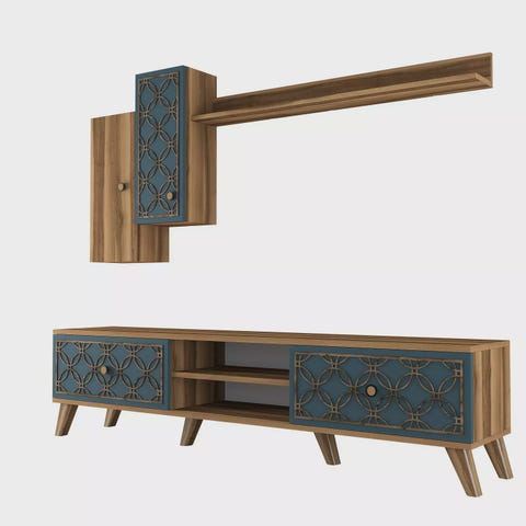 Transformoi olohuoneesi upealla tv-yksiköllämme ja seinähyllyillämme!Luo tila, joka huokuu eleganssia ja hienostuneisuutta modernin ja uudenlaisen tv-yksikön ja seinähyllyjen avulla. Tämä huolella ja yksityiskohtiin kiinnitetyllä huolellisuudella valmistettu kalustesarja on suunniteltu kohottamaan kotisi tyylikkyysosamäärää. Vertaansa vailla oleva laatu100% melamiinipinnoitetusta lastulevystä valmistetut tv-yksikkömme ja seinähyllymme on rakennettu kestämään. 18 mm:n paksuus takaa kestävyyden ja tukevuuden, joten se on luotettava valinta vuosiksi eteenpäin.Runsas säilytystilaLukuisilla hyllyillä varustettu tv-yksikkömme tarjoaa runsaasti säilytystilaa kaikille viihdetarvikkeillesi. Järjestä dvd-levyt, pelikonsolit ja paljon muuta helposti ja pidä olohuoneesi sotkuisena ja järjestettynä. Monipuolinen muotoiluTv-yksikkö voidaan kiinnittää seinään, jolloin voit luoda saumattoman ja tyylikkään ilmeen. Pähkinäpuun ja antrasiitin väriyhdistelmä lisää hienostuneisuutta mihin tahansa huoneeseen, joten se on monipuolinen lisä kodin sisustukseen. Tekniset tiedot:TV-yksikön koko: Syvyys: 33,8 cm, korkeus: 48,6 cm, leveys: 180 cm.Seinähylly Koko 1: Leveys: 75 cm, korkeus: 60 cm, syvyys: 20 cm.Seinähylly Koko 2: Leveys: 90 cm, korkeus: 11. 8 cm, syvyys: 1. 6 cm.Materiaali: Materiaali: 100 % melamiinipinnoitettu lastulevyPaksuus: 18 mmVäri: pähkinä ja antrasiittiUudista asuintilasi tv-yksikkömme ja seinähyllymme avulla ja koe täydellinen yhdistelmä tyyliä ja toiminnallisuutta. Tilaa nyt ja muuta kotisi tyylikkääksi paratiisiksi!