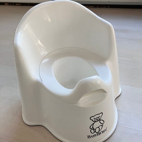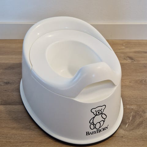 Babybjörn potta, harmaa runko ja valkoinen sisäosa. Irrotettava sisäosa helpottaa tyhjentämistä ja puhdistamista.