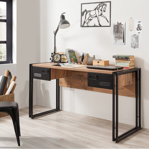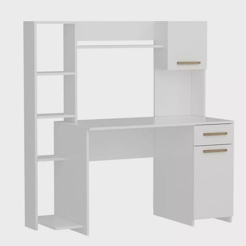 Tyylikäs ja Kestävä Opiskelupöytä - Kultavalkoinen, 120x75x60 cm, 100% Mela