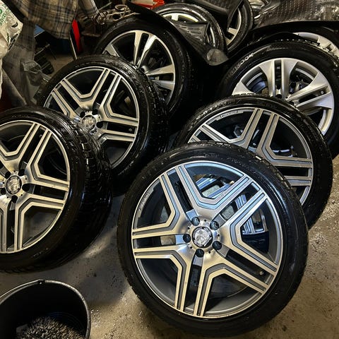 Myydään pois mersun vanteet, koska etu renkaat oli liian leveät tähän autoon