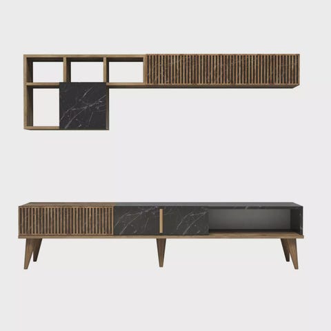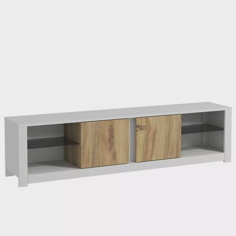 Nosta asuintilaasi upealla tv-telineelläMuunna olohuoneesi tyylikkääksi ja hienostuneeksi turvapaikaksi poikkeuksellisella tv-telineellämme. Tämä hieno huonekalu, joka on suunniteltu tekemään vaikutuksen, kohottaa tilasi ilmapiiriä välittömästi ja luo lämpimän ja kutsuvan ilmapiirin, josta sinä ja rakkaasi voitte nauttia. Vertaansa vailla oleva laatu ja kestävyysTelevisiotelineemme on valmistettu äärimmäisen tarkasti ja huolellisesti 100-prosenttisesti melamiinipinnoitetusta lastulevystä, mikä takaa vertaansa vailla olevan laadun ja kestävyyden. Tämä ensiluokkainen materiaali takaa, että tv-telineesi kestää ajan testin ja pysyy yhtä upeana kuin sinä päivänä, kun toit sen ensimmäistä kertaa kotiin. Täydellinen yhdistelmä eleganssia ja toiminnallisuutta Tyylikkään ja modernin muotoilunsa ansiosta tv-telineessämme yhdistyvät vaivattomasti eleganssi ja toiminnallisuus. Täydellinen yhdistelmä muotoa ja tarkoitusta, tässä jalustassa on tilava pinta televisiollesi ja samalla runsaasti säilytystilaa medialaitteillesi, dvd-levyille ja muille välttämättömille tavaroille. Sano hyvästit sekaville kaapeleille ja sotkuisille viihdekeskuksille!Aesthetic appeal that transcends timeValkoisen ja tammen värin ajaton yhdistelmä tekee tv-telineestämme monipuolisen lisän mihin tahansa sisustukseen. Olipa tyylisi sitten nykyaikainen, perinteinen tai jotakin siltä väliltä, tämä jalusta sulautuu saumattomasti ja parantaa elintilasi esteettistä kokonaisuutta. Tekniset tiedot:Materiaali: Materiaali: 100 % melamiinipinnoitettu lastulevyPaksuus: 18 mmLeveys: 183. 6 cmKorkeus: 140 cmSyvyys: 31,7 cmVärit: Valkoinen ja tammiInvestoi tv-telineeseen, joka mullistaa olohuoneesi. Koe tyylin, toiminnallisuuden ja kestävyyden täydellinen tasapaino. Tilaa nyt ja vie kotiviihteesi uusiin ulottuvuuksiin!
