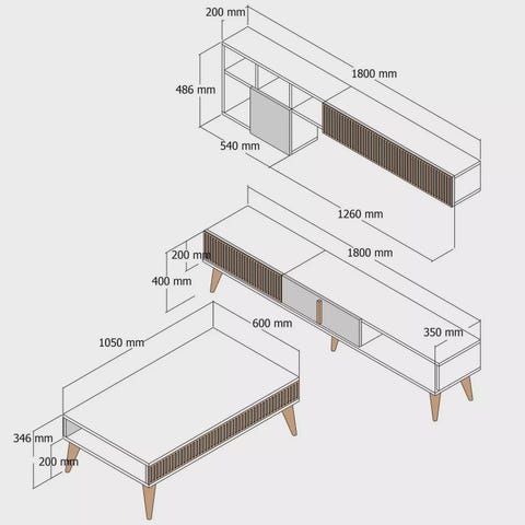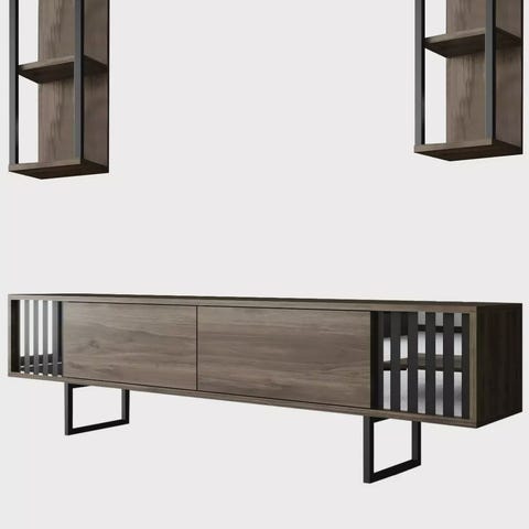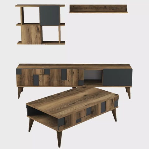 Muunna olohuoneesi tyylikkääksi ja kutsuvaksi tilaksi hienolla olohuoneen kalustesarjalla. Tämä erittäin huolellisesti ja yksityiskohtiin kiinnitetty setti on suunniteltu nostamaan kotisi sisustus uusiin korkeuksiin. Kokea vertaansa vailla olevaa eleganssiaTyylikkään ja modernin muotoilunsa ansiosta tässä kalustesarjassa yhdistyvät vaivattomasti toiminnallisuus ja estetiikka. Runsas pähkinäpintainen pähkinäpuu antaa ripauksen lämpöä ja hienostuneisuutta, kun taas kontrastiset mustat korostukset tuovat nykyaikaisen särmän olohuoneeseesi.Vapauta luovuutesiTämän kalustesarjan monipuolisuuden ansiosta voit vapauttaa luovuutesi ja muokata olohuoneesi yksilöllisen tyylin mukaan. Halusitpa sitten minimalistista ilmettä tai eklektisempää tunnelmaa, tämä setti tarjoaa täydellisen kankaan, jolla voit ilmaista itseäsi ja luoda tilan, joka todella kuvastaa persoonallisuuttasi. Tinkimätön laatuTämä 100-prosenttisesti melamiinipinnoitetusta lastulevystä valmistettu huonekalusarja on rakennettu kestämään aikaa. 18 mm:n paksuus takaa kestävyyden ja vakauden, kun taas metallijalat antavat lisätukea ja parantavat esteettistä kokonaisuutta. Tekniset tiedot:Konsoli: Leveys: 160 cm, syvyys: 35 cm, korkeus: 80 cm.TV-teline: Leveys: 180 cm, Syvyys: 30 cm, Korkeus: 50 cm.Sohvapöytä: Leveys: 90 cm, syvyys: 60 cm, korkeus: 40 cm.Elvytä olohuoneesi olohuoneen kalustesarjalla ja luo tila, joka huokuu eleganssia ja mukavuutta. Älä missaa tätä tilaisuutta muuttaa kotisi tyylin ja rentoutumisen tyyssijaksi. Tilaa nyt ja koe ero itse!