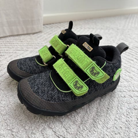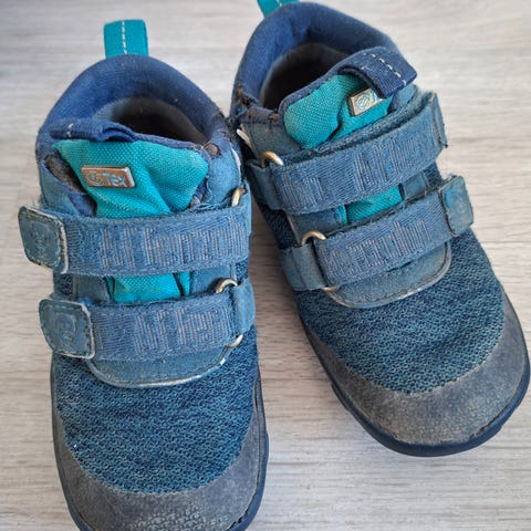 Kohtalaisessa kunnossa olevat pj-kengät. Uudesta haalistuneet ja muutamia tahroja, ks kuvat. Pohjat kunnossa ja tarrat pitävät edelleen. Sisämitaksi saan kenkämitalla 16,7cm mutta valmistajan ilmoittama mitta 17,1cm.