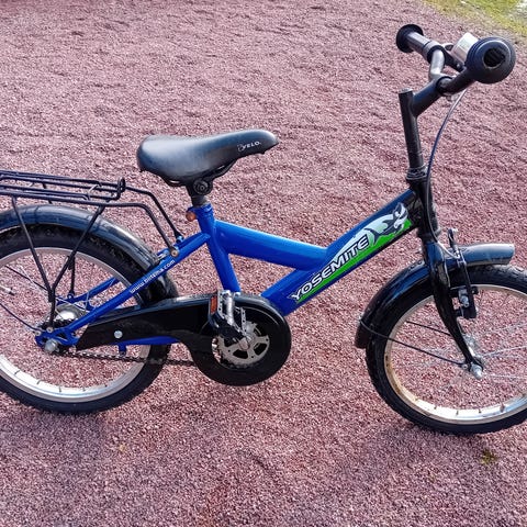Kohtuu hyväkuntoinen pyörä seuraavalle polkijalle. Mukaan tulee apupyörät, työntöaisa ja yhdellä tytöllä satunnaisesti käytössä ollut kypärä.