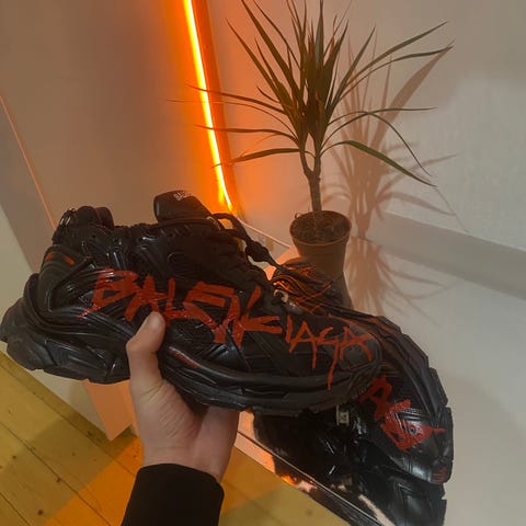 Balenciaga tennarit, koko 44. Sukkatyyppinen malli joustavalla varrella. Päällinen mustaa tekstiiliä, paksu valkoinen kumipohja mustilla yksityiskohdilla. Sopivat arkikäyttöön ja vapaa-aikaan.