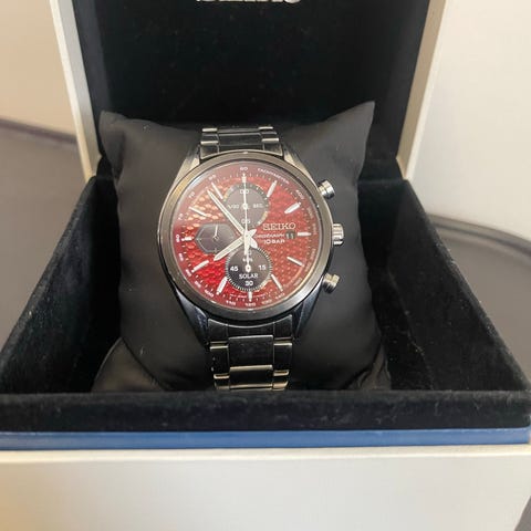 Eli myynnissä kuvan Seikon kello. Kelloa on käytetty vähän vuosien saatossa. Kellon kvartsi koneistot latautuvat valosta, eli ei tarvitse pattereita. En tuosta ominaisuudesta juuri tiedä ,koska en käyttänyt puhelinta koskaan pitempiä aikoja ja nyt ollut vuosia käyttämättömänä.Kulumaa jonkin verran