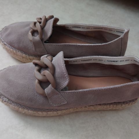 Pavement loafersit, koko 37. Väriltään beige ja materiaaliltaan nahkaa. Klassinen penny‑loafer‑malli, jossa matala kanta ja musta kumipohja. Sopivat arki- ja toimistokäyttöön sekä siistimpään pukeutumiseen. Kenkien sisäosa on pehmustettu lisämukavuutta varten.