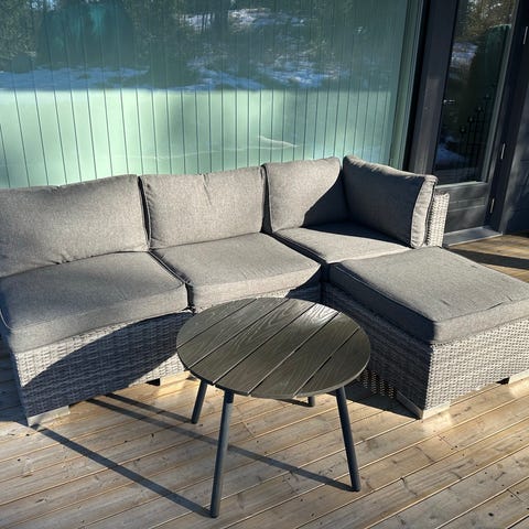 Polyrottinkinen sohva ja sohvapöytä lasikannella. Nopea nouto Raisiosta.