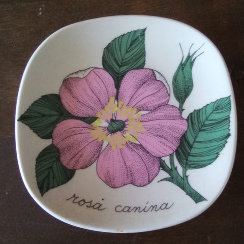 Arabia Rosy Ever Gold Keltsinen Ruusu-seinälautanen.