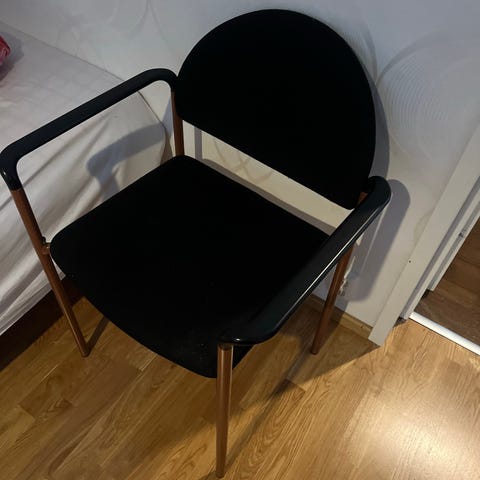 Ilmeisesti viimeisen kuvan tuoli. Naarmuja toki löytyy jo, 40e/tarjous. Vain nouto ja käteinen.